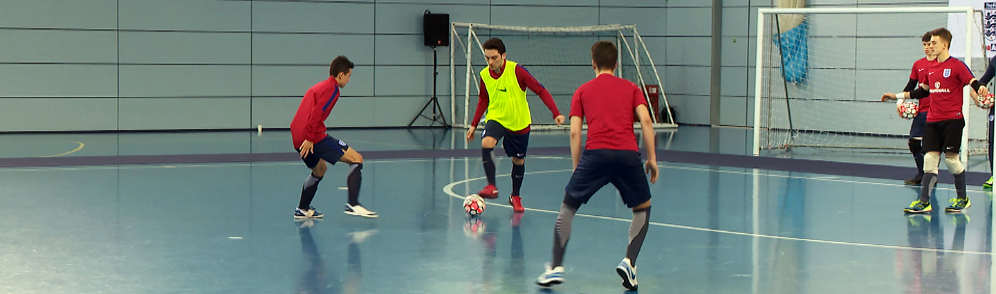 England Futsal head coach, Mike Skubala, delivers a defending session, based on decision-making, with England futsal players.
