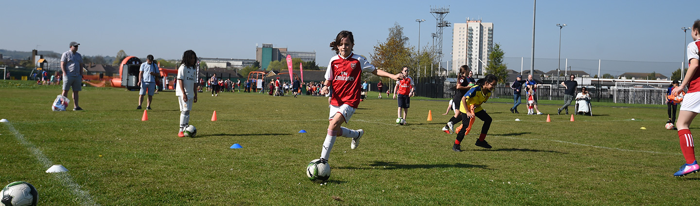 To move this session forward, create gates with different coloured cones so that players have to travel to different gates in a set order whilst dribbling the ball.