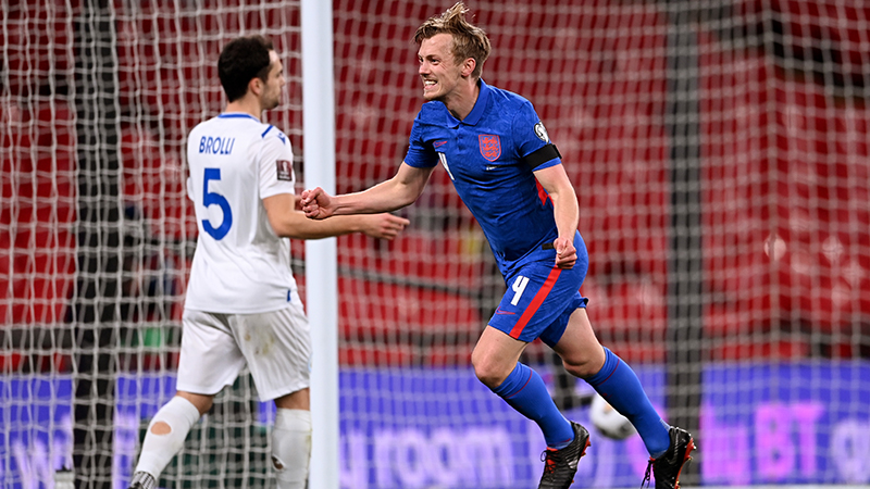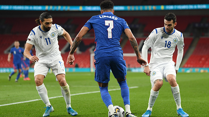 England (4-2-3-1): 1 Nick Pope (Burnley); 2 Reece James (Chelsea), 5 John Stones (Manchester City), 5 Conor Coady (Wolverhampton Wanderers), 3 Ben Chilwell (Chelsea); 8 Kalvin Phillips (Leeds United), 4 James Ward-Prowse (Southampton); 7 Jesse Lingard (West Ham United, on loan from Manchester United), Mason Mount (Chelsea), Raheem Sterling (Manchester City) (c); Dominic Calvert-Lewin (Everton)