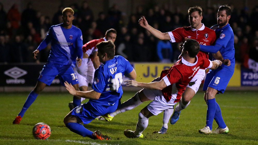 Chris Lynch then came close with a header across goal for Salford but they were soon level, O’Halloran reacting quickest to smash home from Andy Dawson’s knockdown.