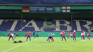 England Under-21s put in their final preparations before Friday's game with Germany by training at the Brita Arena in Wiesbaden on Friday.