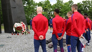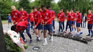 From there, the England squad and staff headed to the Homo Homini memorial in the town, which was created in 2001 following the 9/11 atrocity to commemorate victims of terrorist activity from around the world.