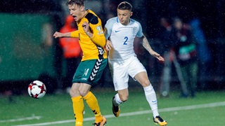 At the other end, Lithuania’s best chance of the half came when the hosts took advantage of a slip from Michael Keane to break but Darvydas Sernas was off-target as his shot drifted the wrong side of the post.